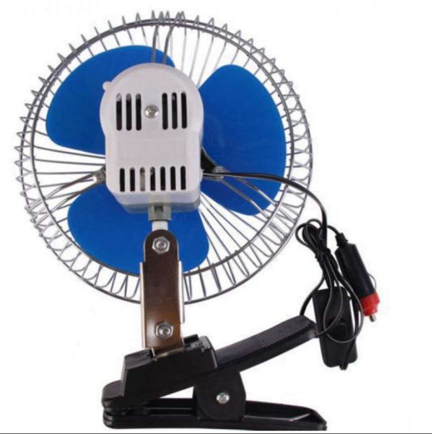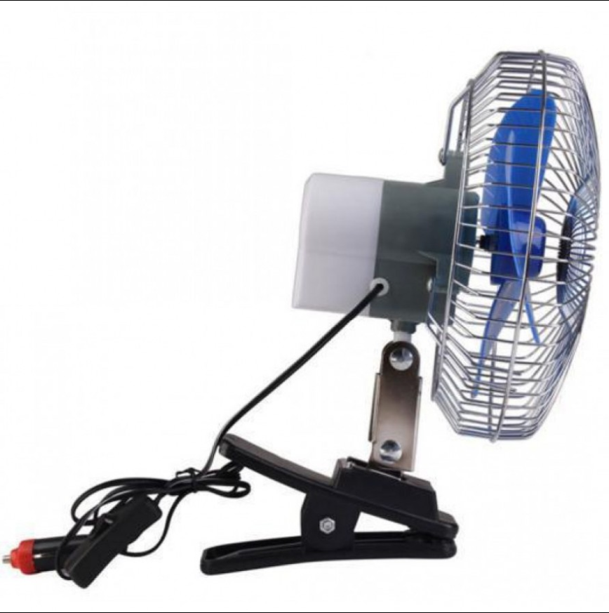 Ανεμιστήρας αυτοκινήτου 12V με χρωμιωμένο μεταλλικό πλέγμα * Έλικα από πλαστικό άκαμπτο μπλε PVC υψηλής ποιότητας * Φορτιστής αυτοκινήτου (12V) * Διάμετρος ανεμιστήρα: 20 εκατοστά * Διάμετρος έλικα: 8 ίντσες * Ρυθμιζόμενη Περιστρεφόμενη κεφαλή * Ταχύτητα περιστροφής 4200 στροφές / λεπτό * Καλώδιο ρεύματος 12v μήκος 1.2 m * Κλιπς ανάρτησης * Βάρος: 650 γραμμάρια.